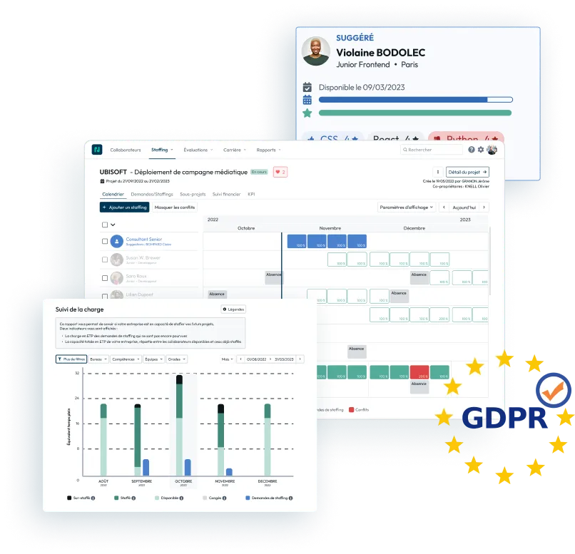 Vous êtes (et resterez à jamais) propriétaires des données intégrées dans Napta. Nous ne collectons aucune donnée considérée comme ‘sensible’ au sens du RGPD (sexe, salaire, numéro de Sécurité Sociale…). Les utilisateurs de Napta conservent en tout temps et tous lieux le droit d’accès, de rectification, d’effacement et d’opposition, droit à la limitation du traitement, droit à la portabilité des données, droit de ne pas faire l’objet d’une décision individuelle automatisée (y compris le profilage).